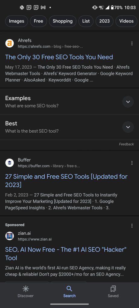 Publicidad intercalada con los resultados orgánicos de búsqueda, captura de pantalla por Patrick Stox